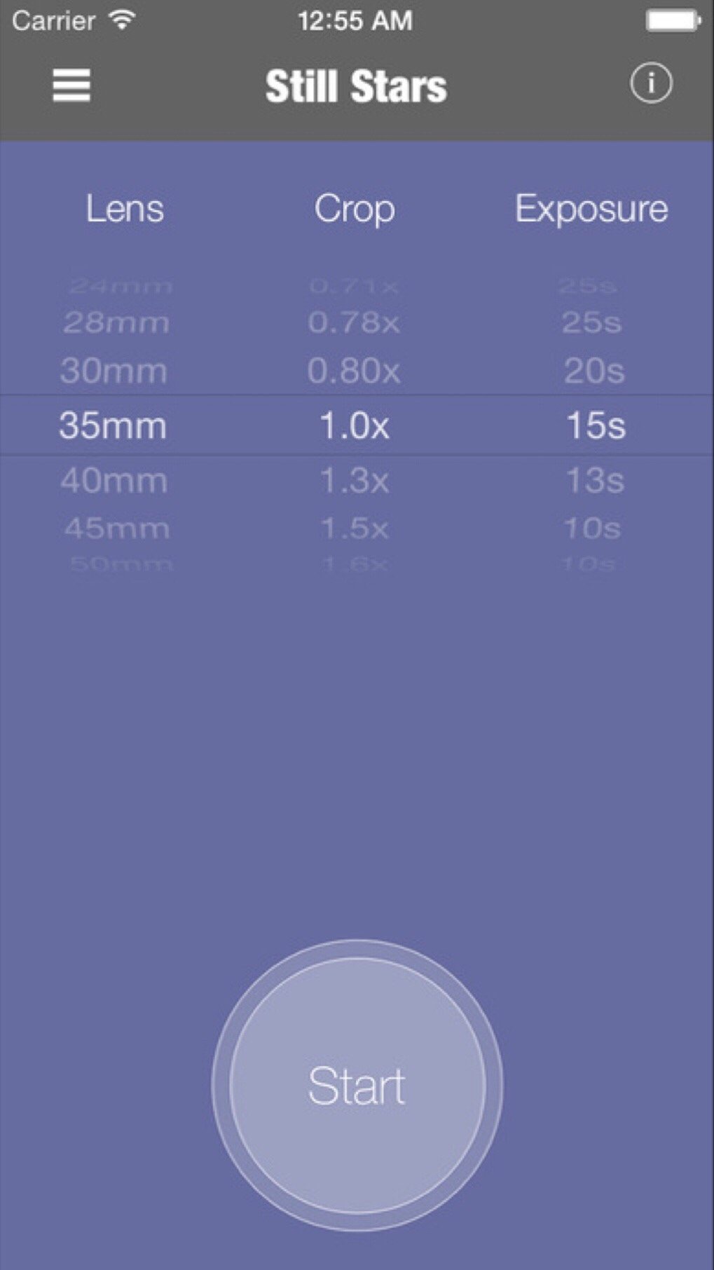 ٢ – حاسبة النجوم الساكنة ( Still Stars )، وتفيد في إعطاءك قيمة سرعة الغالق بناء على الطول البؤري، او بمعنى آخر تغنيك عن عملية حساب قانون 500