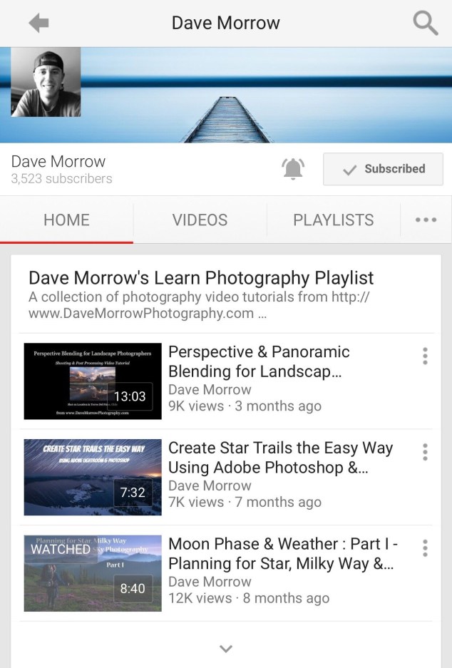 – او من خلال تصفح قناة المصور Dave Morrow على اليوتيوب
