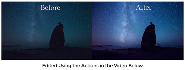وهي خاصة بمعالجة صور السماء ليلا: النجوم، ودرب التبانة. من إعداد المصور Dave Morrow. انظر للصورة في الأسفل قبل و بعد المعالجة باستخدام إحدى الأكشنات التي أعدها.
