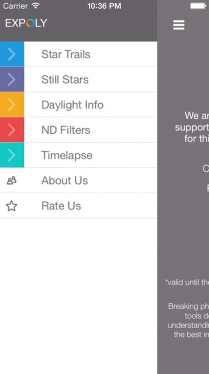 #أولا : تطبيق Expoly وهو تطبيق مدفوع متاح في متجر أبل وقد يكون متاحا في متجر أندرويد. يشتمل على عدة حاسبات، مايهمنا منها في موضوع تصوير النجوم هو وجود حاسبتين هما: