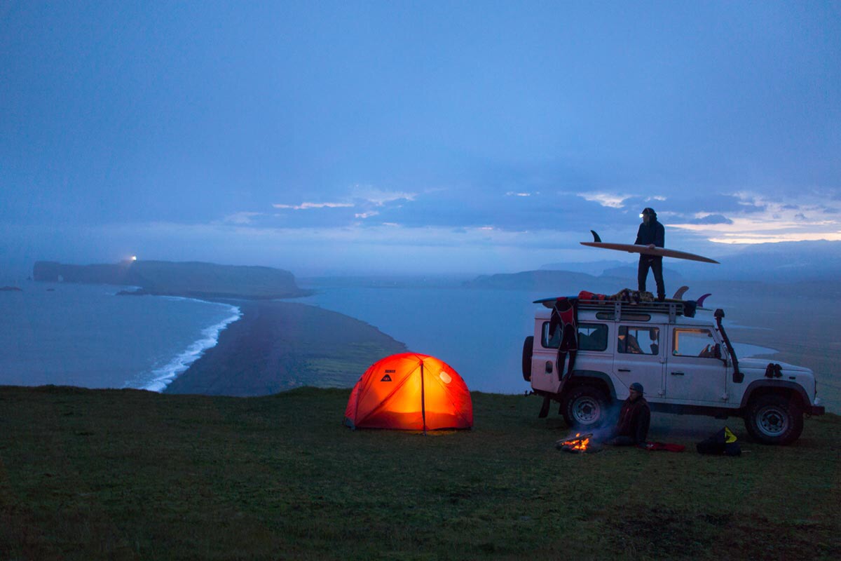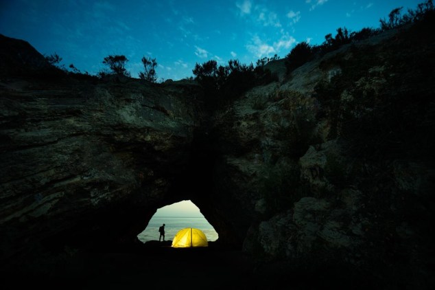 ٣- أو باستخدام حيلة مفضلة عند بعض المصورين وهي، إشعال مصدر ضوء بداخل الخيمة، وتصوير المخيم مع المكان بحلول الغسق. وستكون هذه الحيلة مفيدة أكثر إذا ما كانت الخيمة فوق قمة جبل، أو على شاطئ رملي، أو حتى على حافة وادي أو منحدر. بحيث يكون موقع الخيمة محوريا في تكوين الصورة.