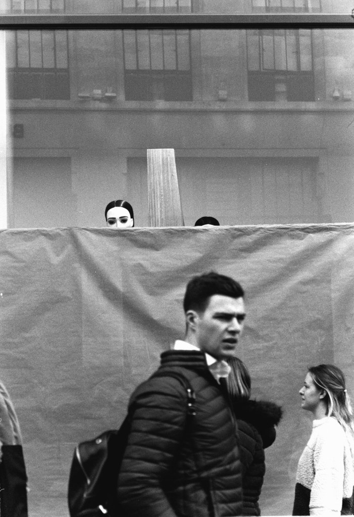 أعتقد أن العديد من صور فوتوغرافيا الشوارع “الموجة الجديدة” قد تبدو سينمائية لأنها غالبًا ما تشبه اللقطة التأسيسية – شخصيات تتحرك عبر مساحة، وأشكال ظلّيّة غامضة، هياكل معمارية فاتحة وعريضة. ومع ذلك، بدون سياق بقية قصة الشخصية (كما هو الحال في الفيلم)، فهي حقا لاتخدم وظيفة اللقطة التأسيسية – إنها لا تؤسس لأي شيء ما لم ينتهي الأمر بتضمينها في سلسلة.